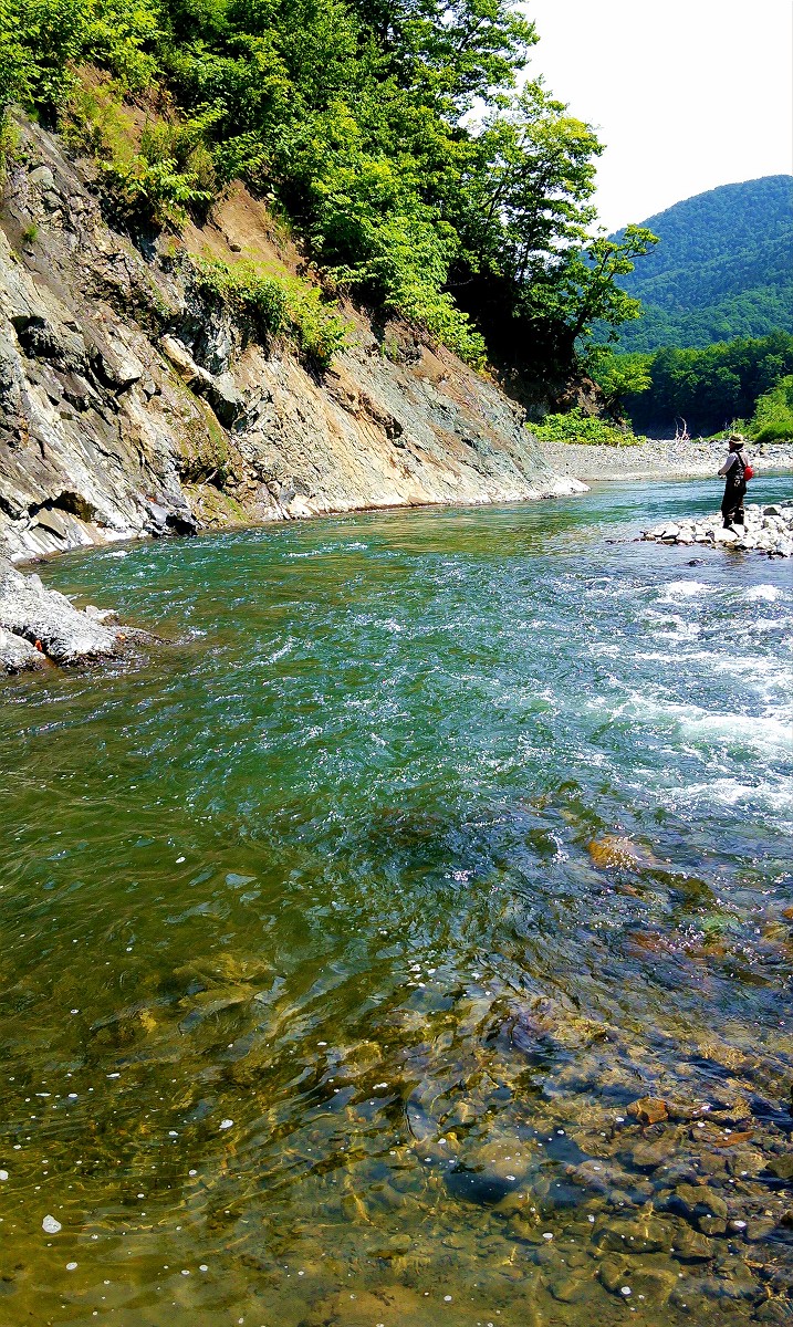 そして翌日来てみると、やはり札幌から近い事もあって結構人がいます。駐車スペースも最後1台分でギリギリでした。釣り人の立ち位置から察するに、真水が多く流れ込む右岸が人気ポイントみたいですね。